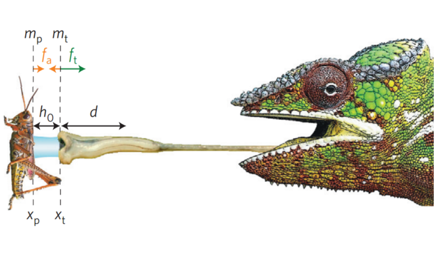 Fabian Brau et al. “Dynamics of prey prehension by chameleons through viscous adhesión” Nature Physics 20 de junio de 2016