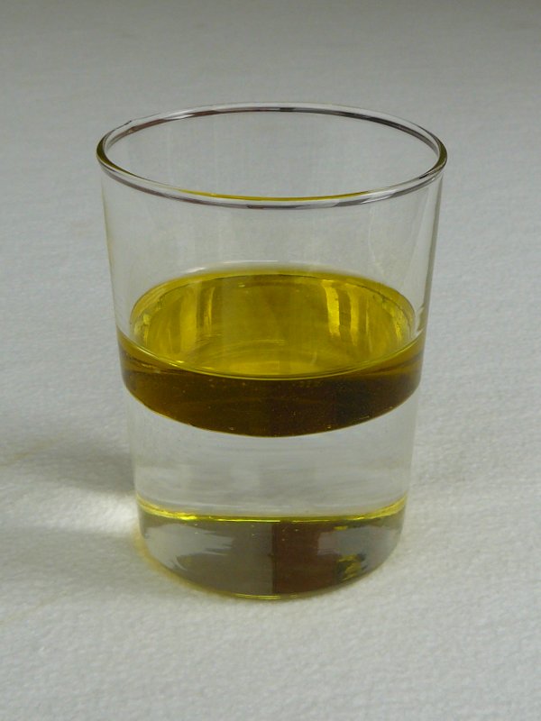 Entonces, las sustancias ya sea líquidas o sólidas que se añaden a un líquido flotan a diferentes alturas según sea su densidad. Esto también incluye a los aceites. No todos los aceites o grasas flotan, puede parecer una observación simple, pero es importante, por ejemplo en un aderezo para ensalada se puede ver a simple vista las capas que lo componen, el aceite en algunos aderezos, dependiendo de su composición, permanece en la parte de arriba o abajo.