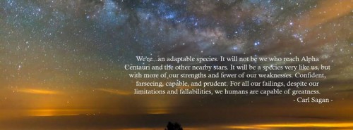Además como dice Carl Sagan “somos una especie adaptable…y no seremos nosotros los que lleguemos a Alfa Centauri y las otras estrellas cercanas. Será una especie muy similar a nosotros, pero con más de nuestras fortalezas y pocas de nuestras debilidades. Confiados, previsores, capaces y prudentes. A pesar de todos nuestros defectos, a pesar de nuestras limitaciones y falibilidades, nosotros los seres humanos somos capaces de grandeza”.