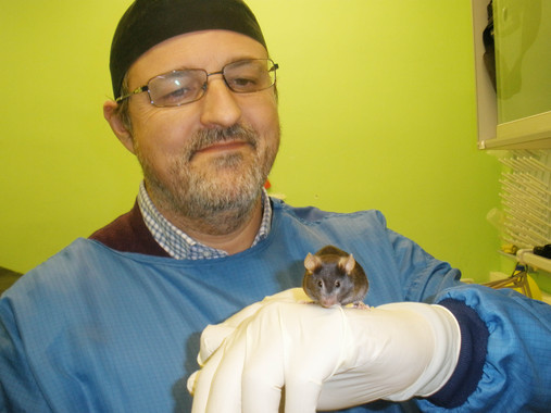 Un investigador de la Universidad de Córdoba muestra un ratón de experimentación empleado en el estudio de los efectos de la restricción calórica en el organismo. / UCO