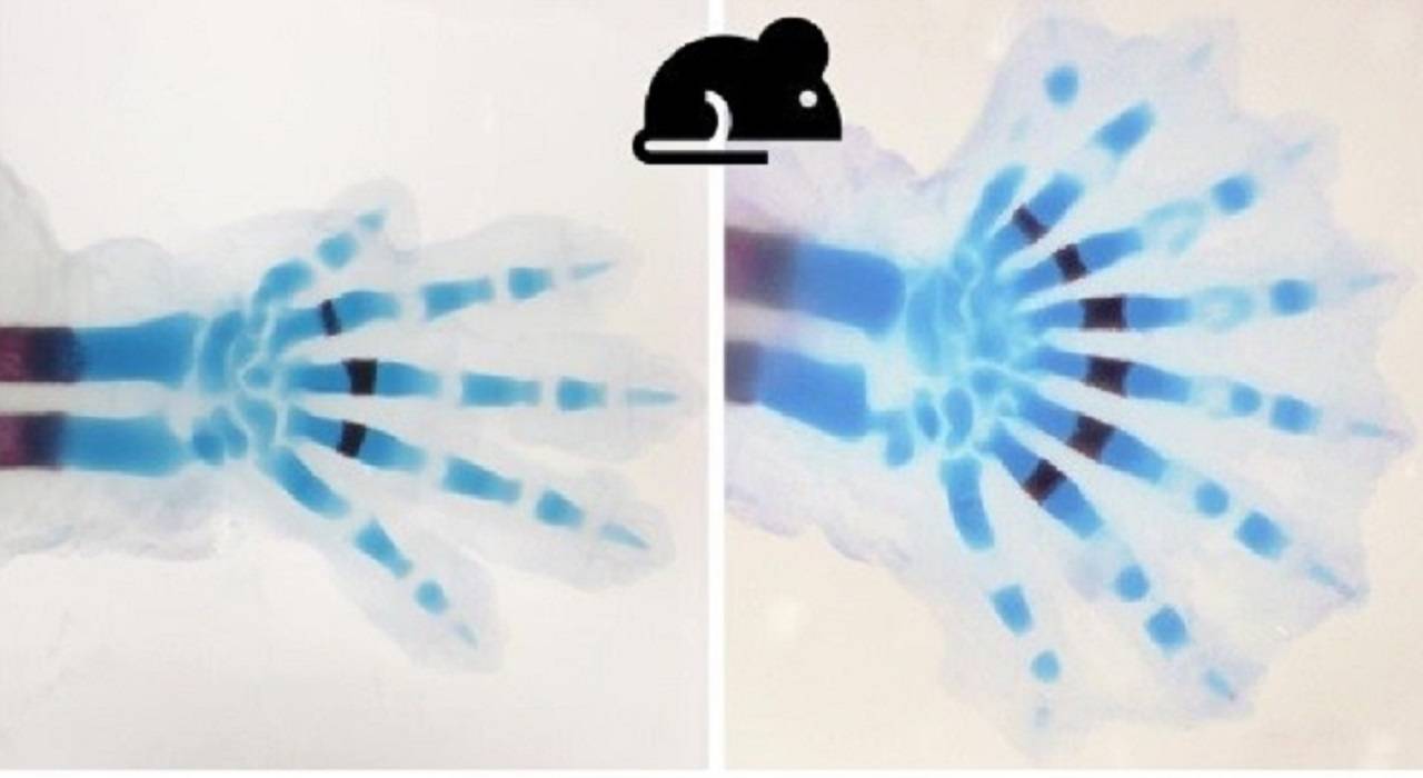 La mutación del gen Gli3 hace que se formen demasiados huesos en el esqueleto de la mano del ratón. / CSIC