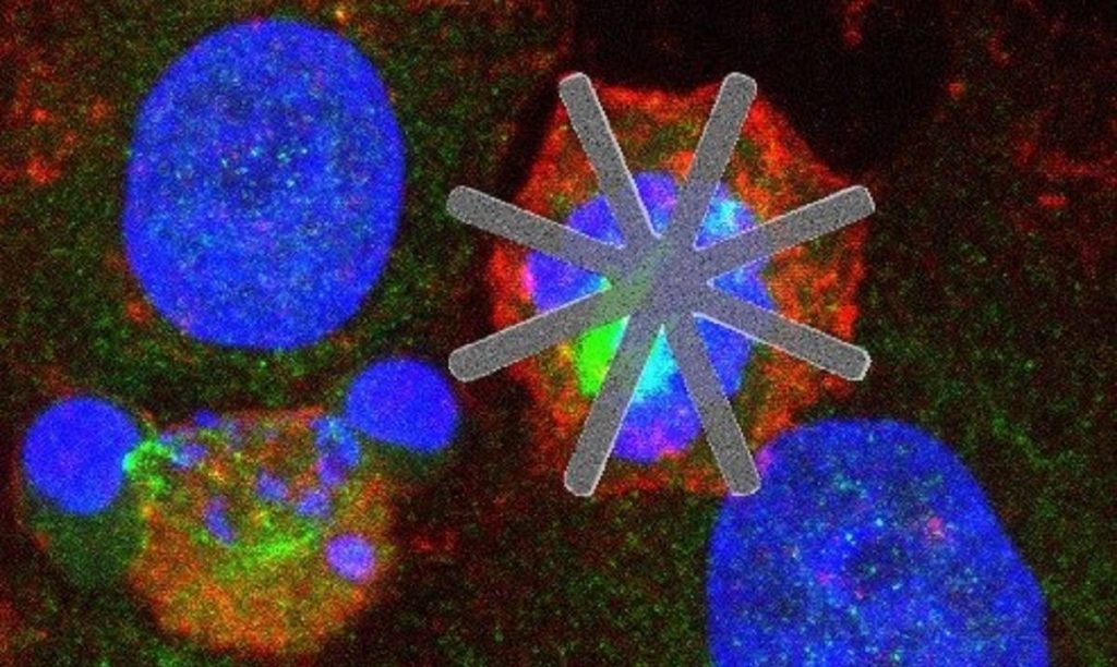 Célula HeLa con un chip de silicio en forma de estrella en su interior / CSIC